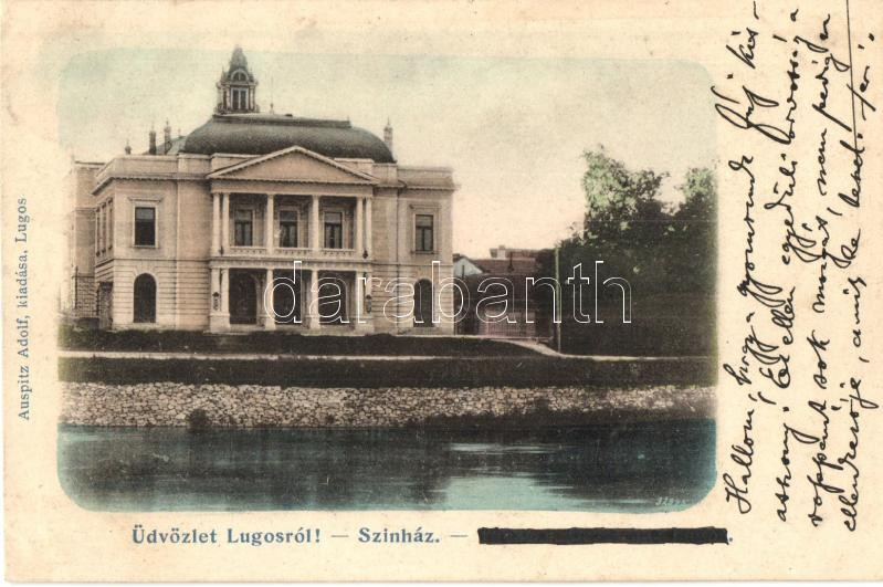 Beschreibung: Lugos, Lugoj; Színház, Auspitz Adolf kiadása / theatre (ázott / wet damage)