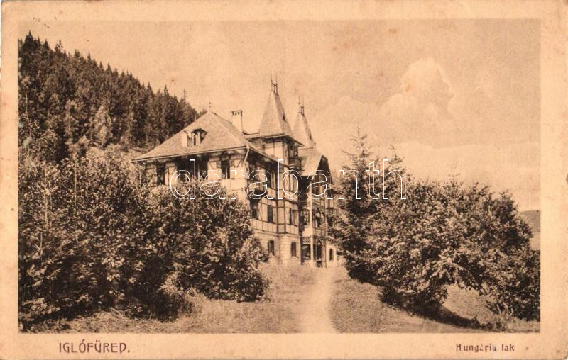 Iglófüred, Spisská Nová Ves Kupele; Hungária szálloda, kiadja Ferencz ... https://www.darabanth.com/de/281-Fernauktion/281.0/Ansichtskarten/Slowakei~200008/Iglofured-Spisska-Nova-Ves-Kupele-Hungaria-szalloda-kiadja-Ferencz-D-hotel~II1436220