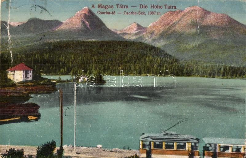 Tátra, Magas Tátra, Vysoké Tatry; Csorba tó, villamos, kiadja Divald é... https://www.darabanth.com/de/281-Fernauktion/281.0/Ansichtskarten/Slowakei~200008/Tatra-Magas-Tatra-Vysoke-Tatry-Csorba-to-villamos-kiadja-Divald-es-Monostory-lake-tram-~II1452600