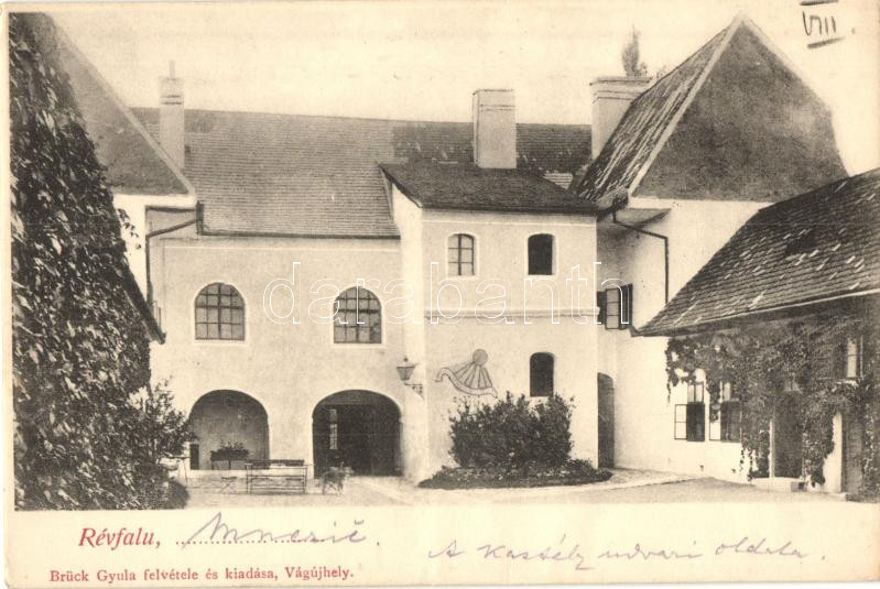 Beschreibung: Vágrévfalu, Révfalu, Mnesice; Pongrácz kastély udvari oldala, Brück Gyula felvétele és kiadása / castle courtyard