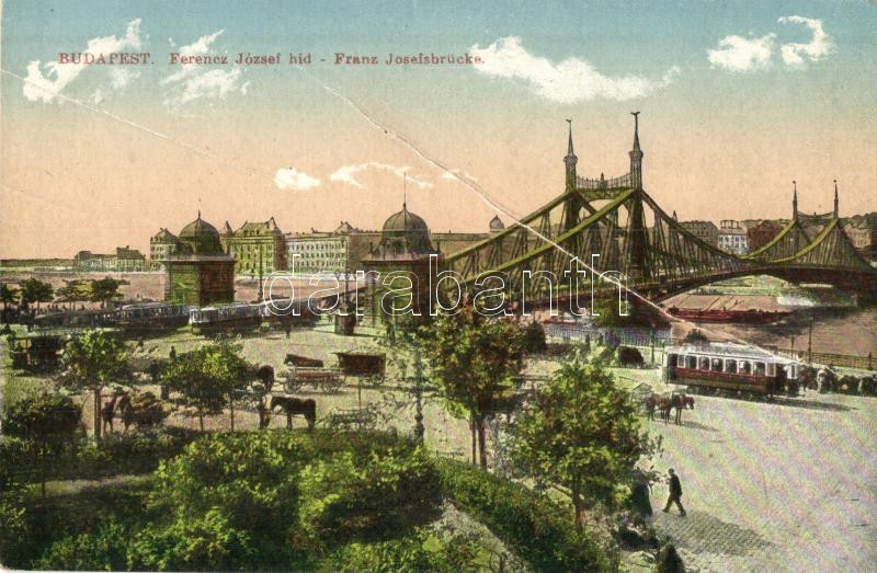 Budapest, Ferenc József híd, villamosok (fa) https://www.darabanth.com/de/281-Fernauktion/281.0/Ansichtskarten/Ungarn~200006/Budapest-Ferenc-Jozsef-hid-villamosok-fa~II1446922