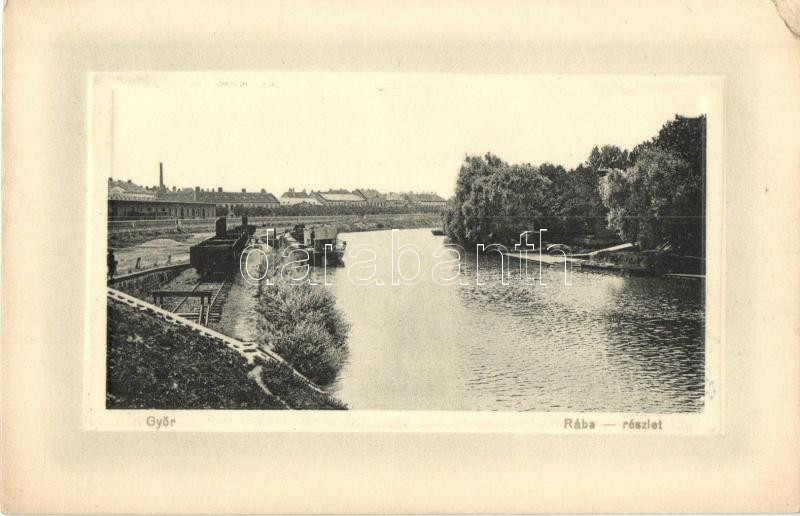 Győr, Rába, uszály, vasúti sín vagonnal, kiadja Herman Izidor (EK) https://www.darabanth.com/de/281-Fernauktion/281.0/Ansichtskarten/Ungarn~200006/Gyor-Raba-uszaly-vasuti-sin-vagonnal-kiadja-Herman-Izidor-EK~II1453285