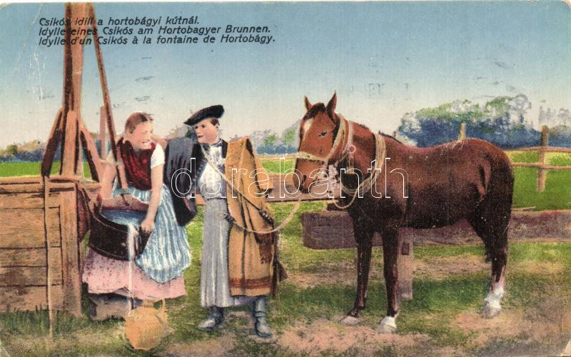 Hortobágy, Csikós idill a kútnál (Rb) https://www.darabanth.com/de/281-Fernauktion/281.0/Ansichtskarten/Ungarn~200006/Hortobagy-Csikos-idill-a-kutnal-Rb~II1436737