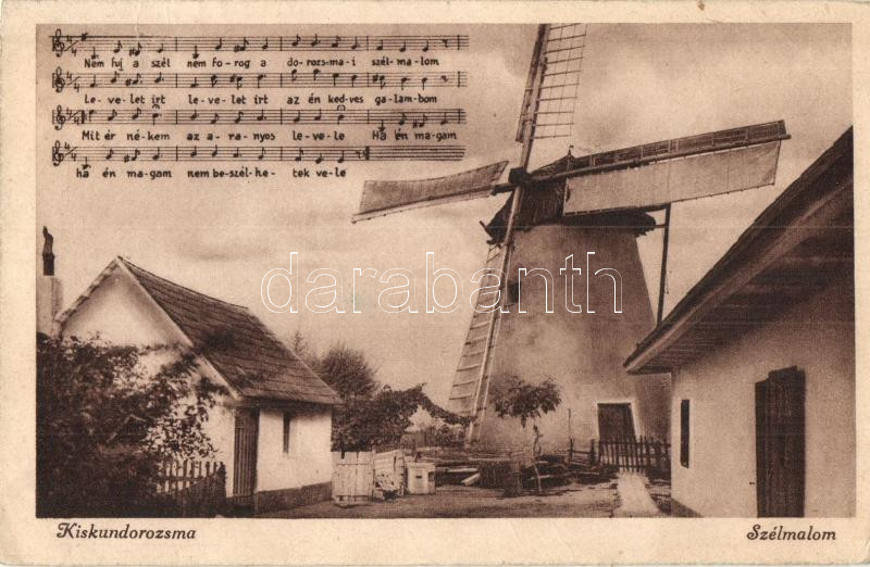 Kiskundorozsma, Szélmalom, kottás lap (EK) https://www.darabanth.com/de/281-Fernauktion/281.0/Ansichtskarten/Ungarn~200006/Kiskundorozsma-Szelmalom-kottas-lap-EK~II1449842
