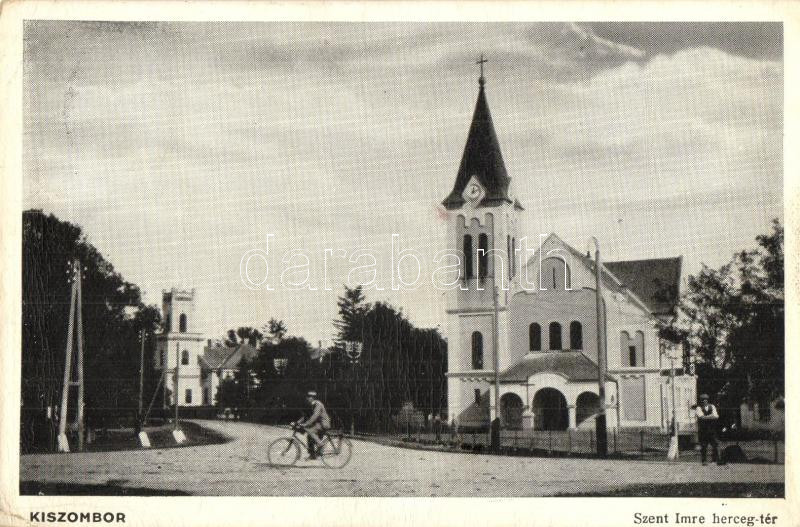 Kiszombor, Szent Imre herceg tér, templom (vágott / cut) https://www.darabanth.com/de/281-Fernauktion/281.0/Ansichtskarten/Ungarn~200006/Kiszombor-Szent-Imre-herceg-ter-templom-vagott-cut~II1447127