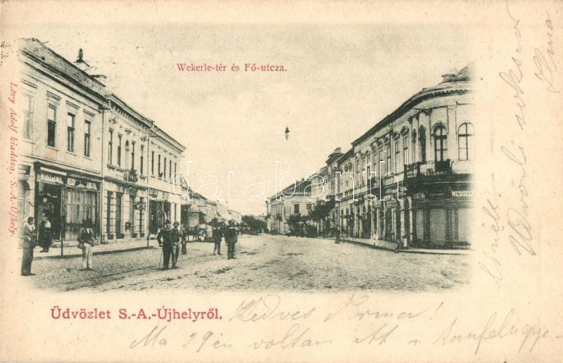 Beschreibung: Sátoraljaújhely, Wekerle tér és Fő utca, Weisz és Emil és Wessely üzlete