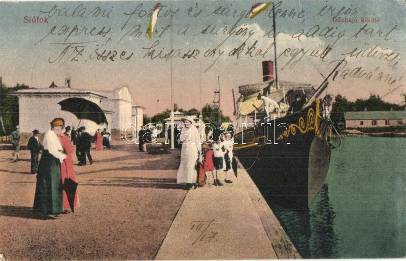 Siófok, Gőzhajó kikötő, Baross Gőzös (EK) https://www.darabanth.com/de/281-Fernauktion/281.0/Ansichtskarten/Ungarn~200006/Siofok-Gozhajo-kikoto-Baross-Gozos-EK~II1453218