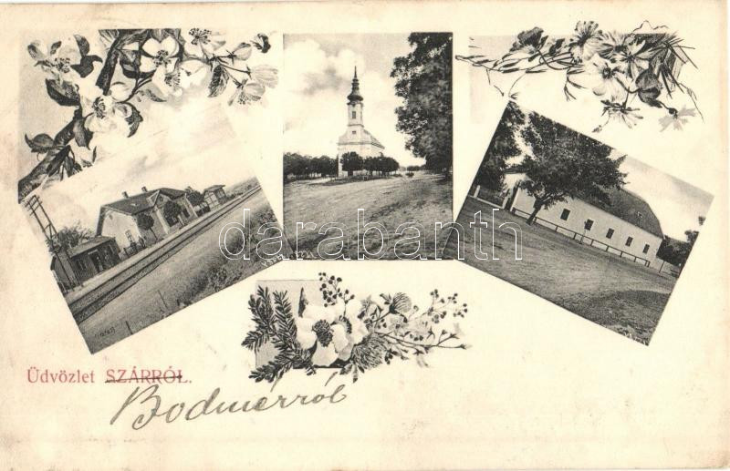 Beschreibung: Szár, vasútállomás, templom, floral (r)