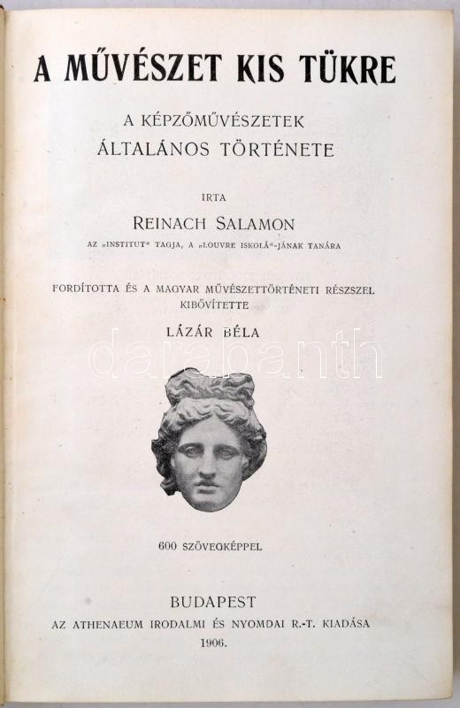 Reinach Salamon: A művészet kis tükre. Fordította és a magyar művészettörténeti résszel kibővítette Lázár Béla. Budapest, 1906, Athenaeum Irodalmi és Nyomdai Rt. Kiadói kopottas aranyozott egészbőr kötés.