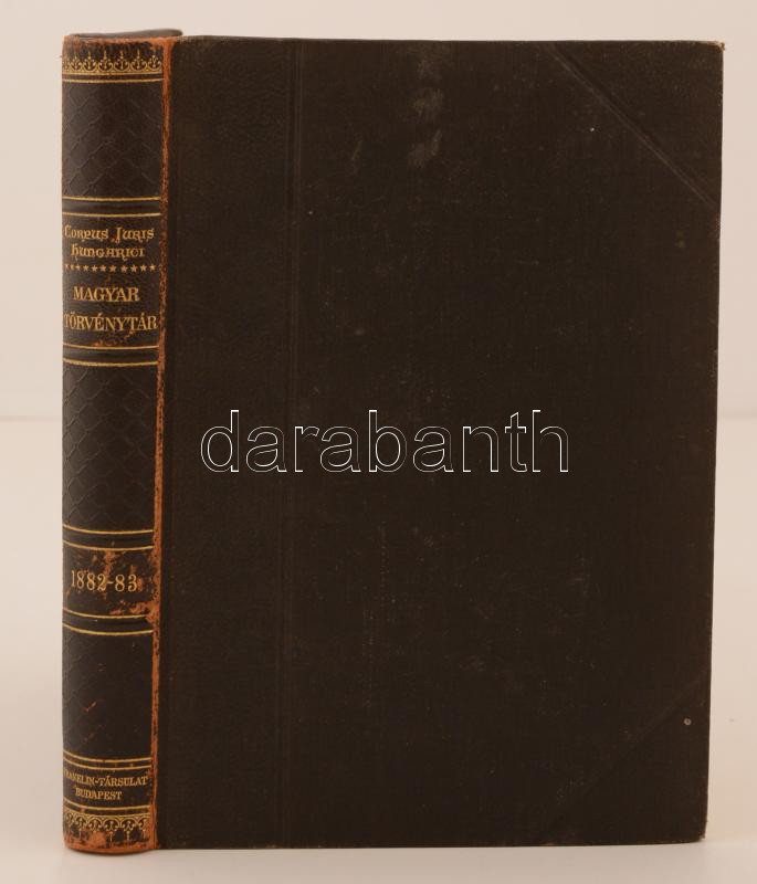 Corpus Juris Hungarici. Magyar Törvénytár Milleniumi emlékkiadás. 1882-83. évi törvénycikkek. Bp., 1896, Franklin. (Grill K.) Gottermayer féle, aranyozott félbőr kötésben.