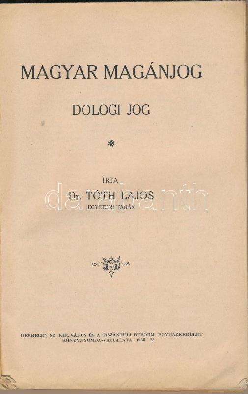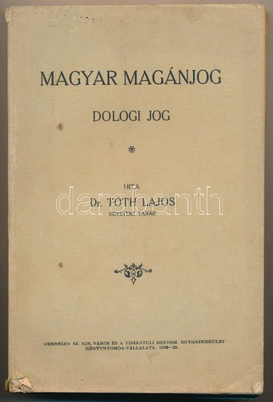 dr. Tóth Lajos: Magyar magánjog - Dologi jog. Debrecen, 1930. Papírköt... https://www.darabanth.com/de/281-Fernauktion/281.0/Bucher/Bucher-Justiz~31/dr-Toth-Lajos-Magyar-maganjog--Dologi-jog-Debrecen-1930-Papirkotesben-kis-hibaval-a-gei~II1448841