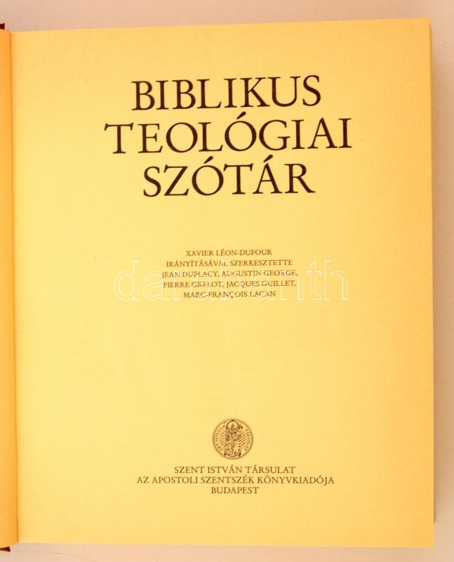 Beschreibung: Biblikus Teológiai Szótár. Szerk.: Xavier Léon-Dufour, Szabó Ferenc, Nagy Ferenc. Budapest, é.n. (1992), Szent István Társulat. Kiadói kemény papÃrkötés. A magyar fordÃtás az 1970-es második, javÃtott és bÅ‘vÃtett francia kiadás alapján készült.