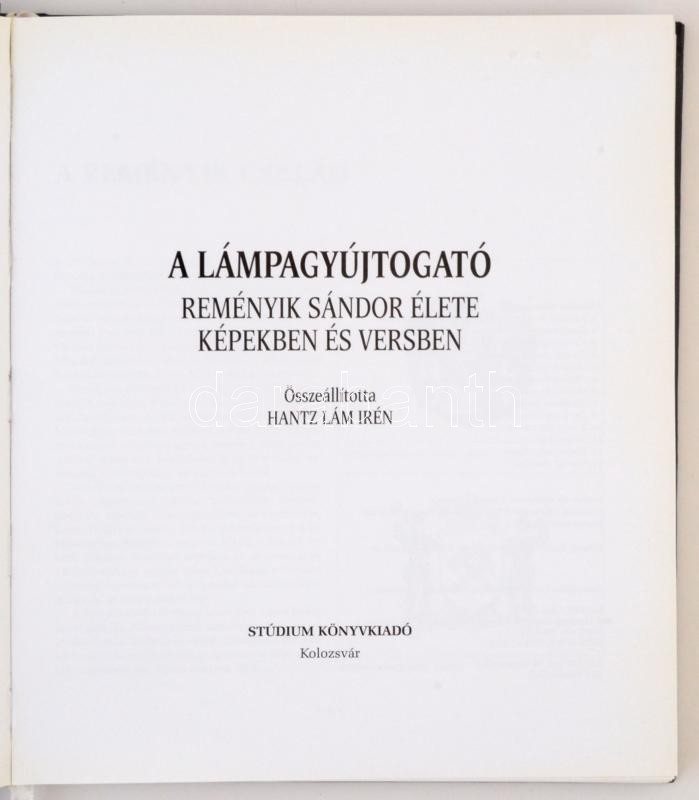 A lámpagyújtogató. Reményik Sándor élete képekben és versben. Összeáll.: Hantz Lám Irén. Kolozsvár, 2007, Stúdium. Kartonált papírkötésben, jó állapotban.