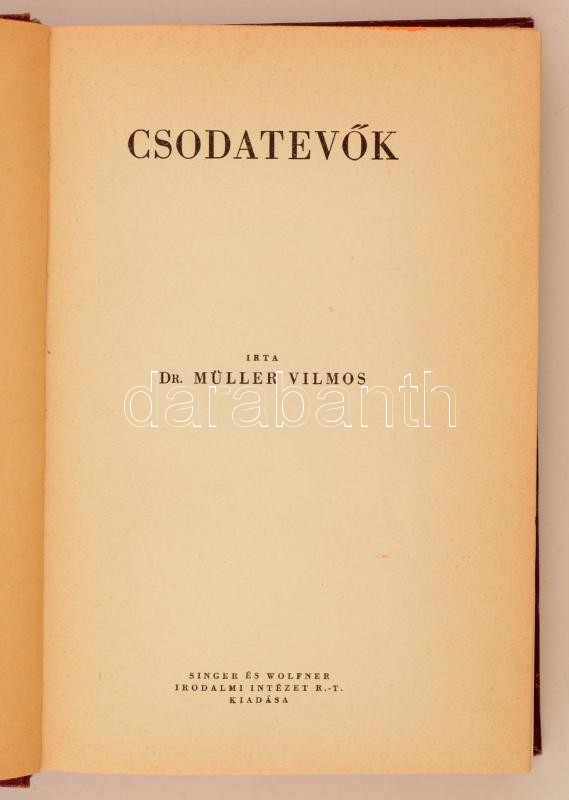 Dr. Müller Vilmos: Csodatevők. Az otthon könyvtára. Budapest, é.n. ,Si... https://www.darabanth.com/de/281-Fernauktion/281.0/Bucher/Bucher-Sonstige-Raritaten~42/Dr-Muller-Vilmos-Csodatevok-Az-otthon-konyvtara-Budapest-en-Singer-es-Wolfner-Irodalmi~II1434489