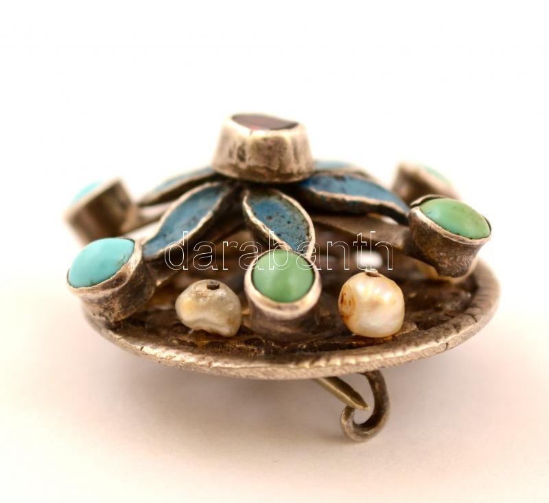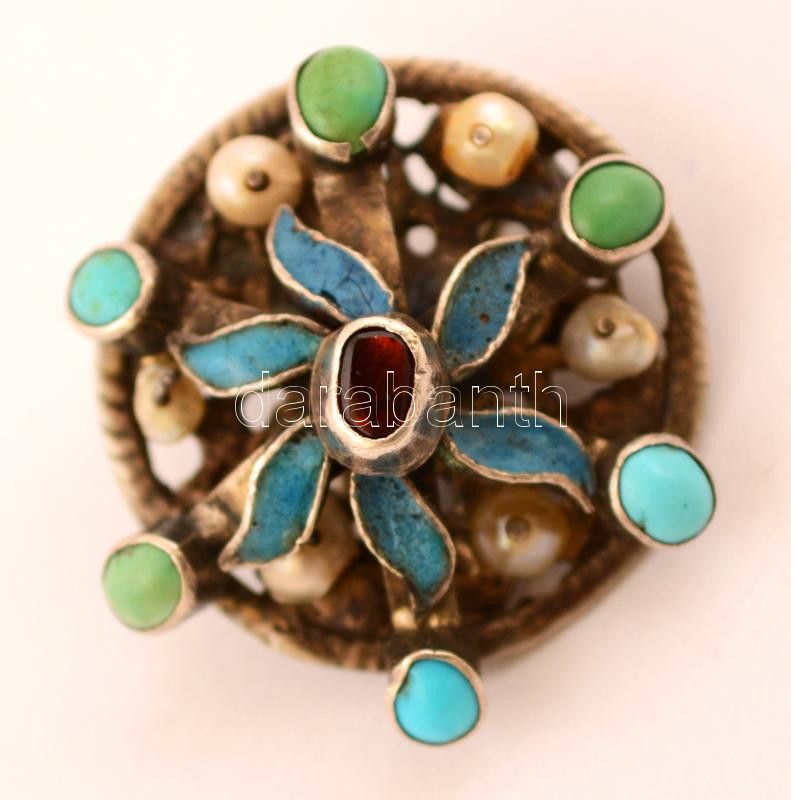 Antik ezüst (Ag.) bross zománccal, gyönggyel, türkizzel, bruttó:7,2 g https://www.darabanth.com/de/281-Fernauktion/281.0/Juwelen/Juwelen~300020/Antik-ezust-Ag-bross-zomanccal-gyonggyel-turkizzel-brutto7-2-g~II1449760