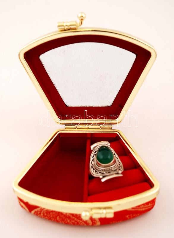 Beschreibung: Ezüst(gyűrű) jáde díszítéssel, méret: 56, br: 7,5 g, fedeles tükrös ékszertartó dobozkában