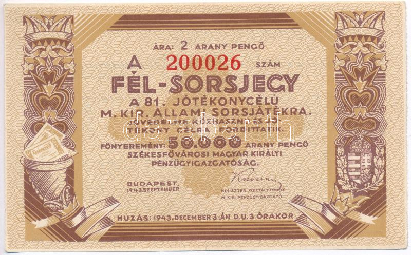 1943. "A 81. Jótékonycélú Magyar Királyi Állami Sorsjáték" f... https://www.darabanth.com/de/281-Fernauktion/281.0/Numismatik/Aktien-und-Tickets~300005/1943-A-81-Jotekonycelu-Magyar-Kiralyi-Allami-Sorsjatek-fel-sorsjegye-A-szelveny-2P~II1447809