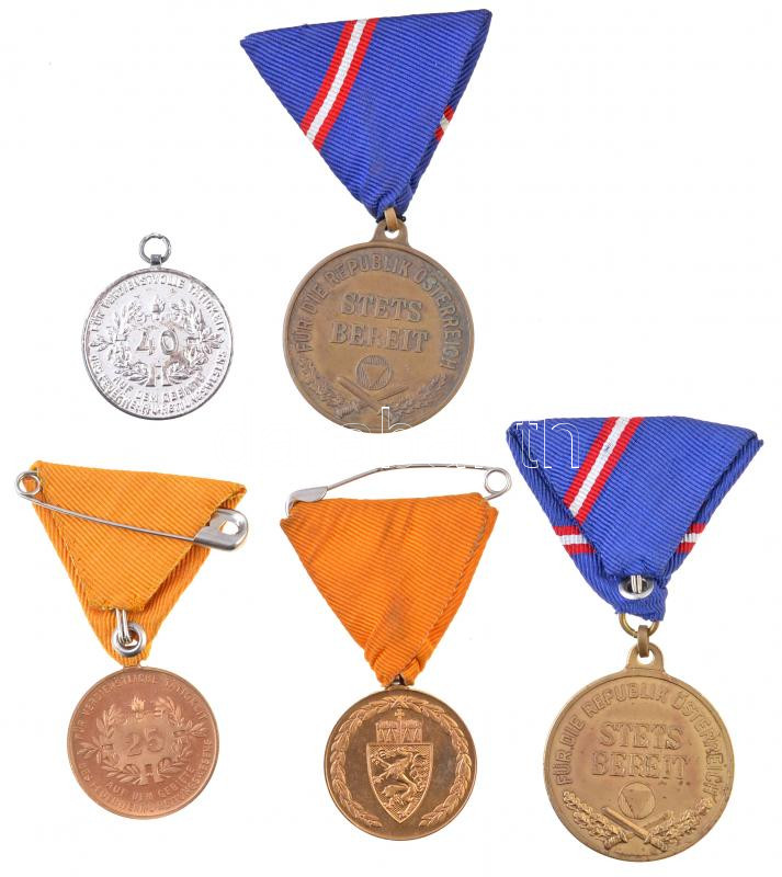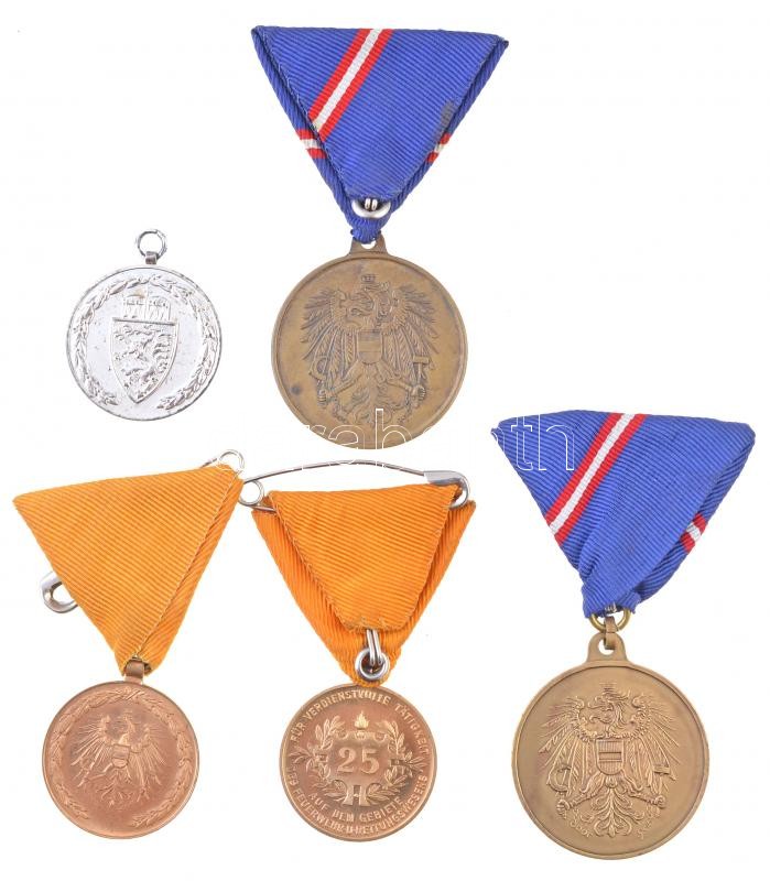 Ausztria 5db-os katonai és tűzoltó kitüntetés egy kivételével mind szalaggal, közte DN "Szolgálati medál - kiképző szolgálatért" Br kitüntetés (2x) T:2,2-