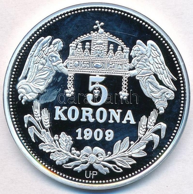 Beschreibung: DN "Királyi koronák - I. Béla 5 korona 1909" Ag emlékérem tanúsítvánnyal (20,11g/0.999/38,61mm) T:PP fo.