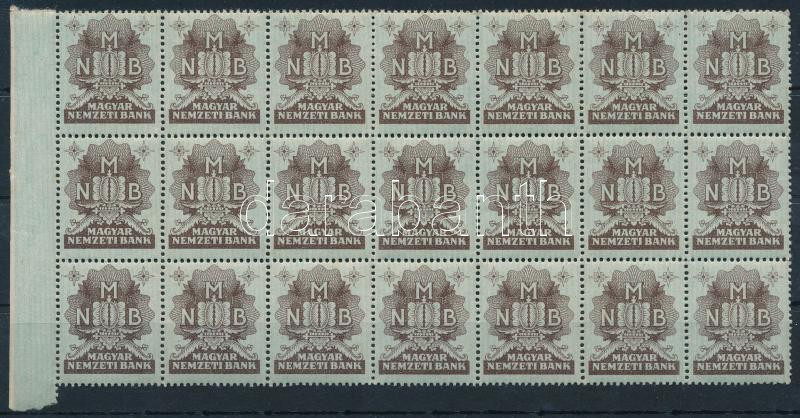 Beschreibung: ~1940. "MNB" bélyeg, barna, ívszéli tömbben (21x), elvált fogakkal