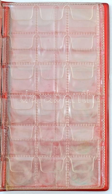 Beschreibung: Műbőr érmetartó album 2x18db kisebb és 2x8db nagyobb érme tárolására, használt állapotban