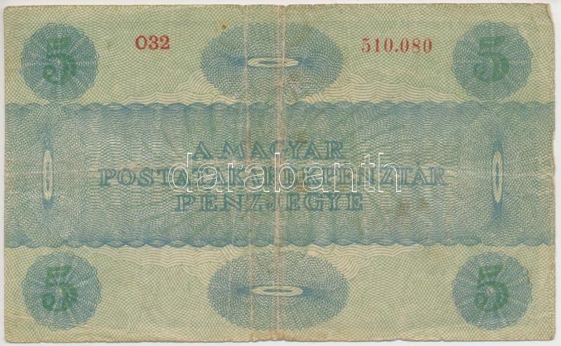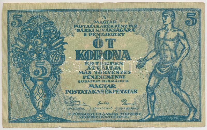 Adamo K8/1 https://www.darabanth.com/de/281-Fernauktion/281.0/Numismatik/Ungarische-Banknoten~300007/1919-5K-MAS-TORVENYES-TIII---Adamo-K81~II1434003