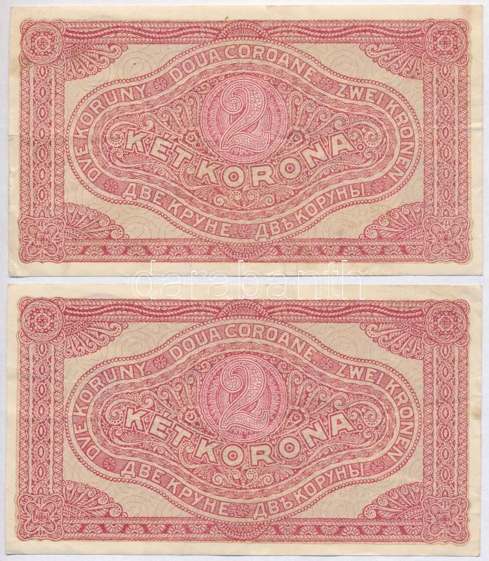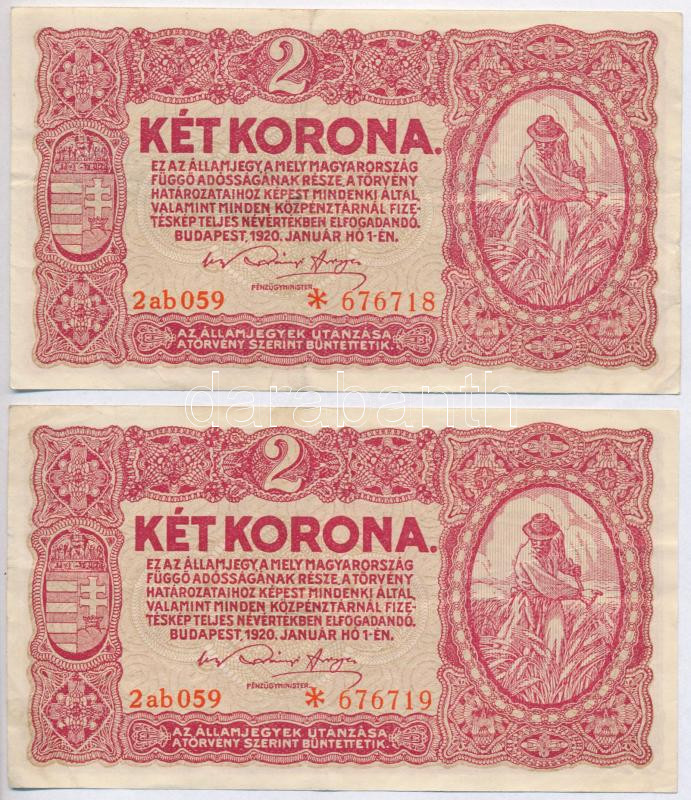 1920. 2K csillagos sorszámmal (2x) sorszámkövetők T:II-,III https://www.darabanth.com/de/281-Fernauktion/281.0/Numismatik/Ungarische-Banknoten~300007/1920-2K-csillagos-sorszammal-2x-sorszamkovetok-TII-III~II1451935