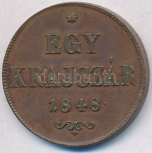 Adamo B1 https://www.darabanth.com/de/281-Fernauktion/281.0/Numismatik/Ungarische-Munzen-und-Munzen-mit-ungarischem-Munzzeichen~300008/1848-1kr-Cu-T2-ph---Adamo-B1~II1450592