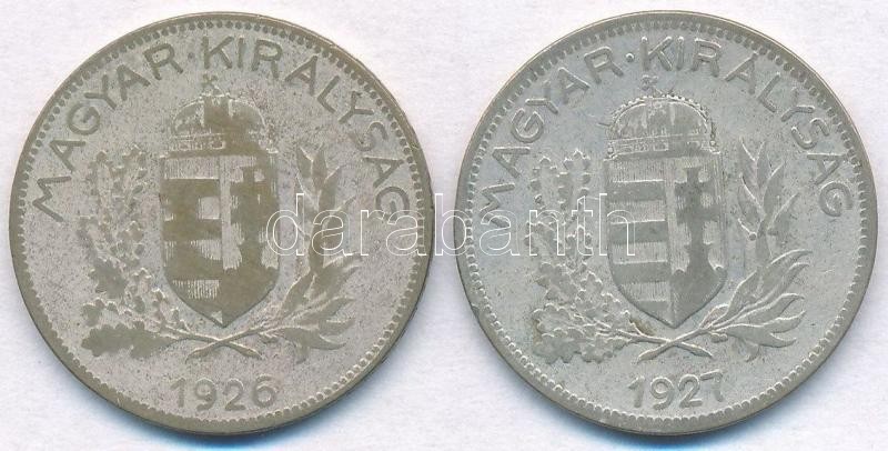 1926-1927. 1P Ag (2x) T:2-,3 https://www.darabanth.com/de/281-Fernauktion/281.0/Numismatik/Ungarische-Munzen-und-Munzen-mit-ungarischem-Munzzeichen~300008/1926-1927-1P-Ag-2x-T2-3~II1450362