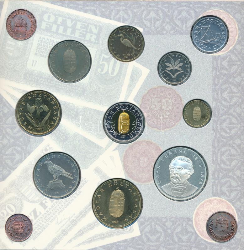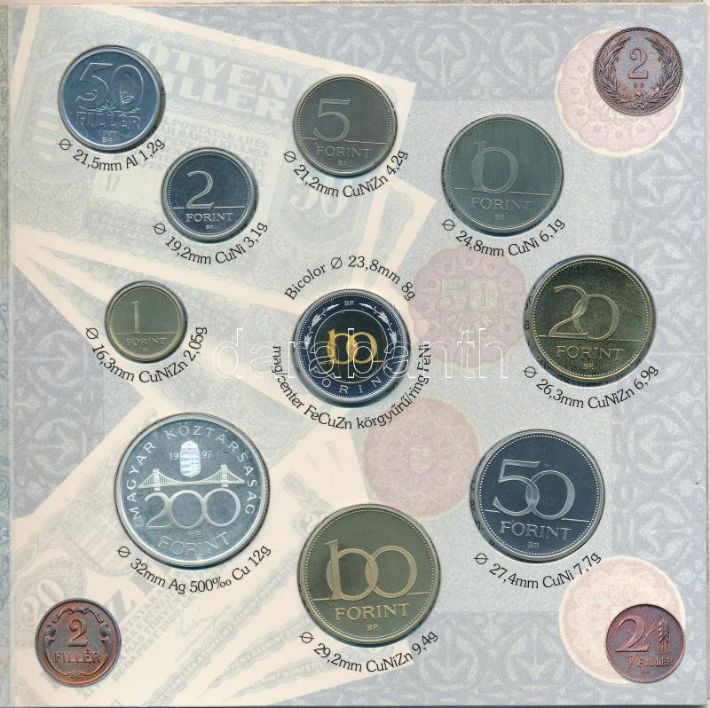 Beschreibung: 1997. 50f-200Ft (10xklf) forgalmi sor, benne 200Ft Ag "Deák", karton díszcsomagolásban T:PP