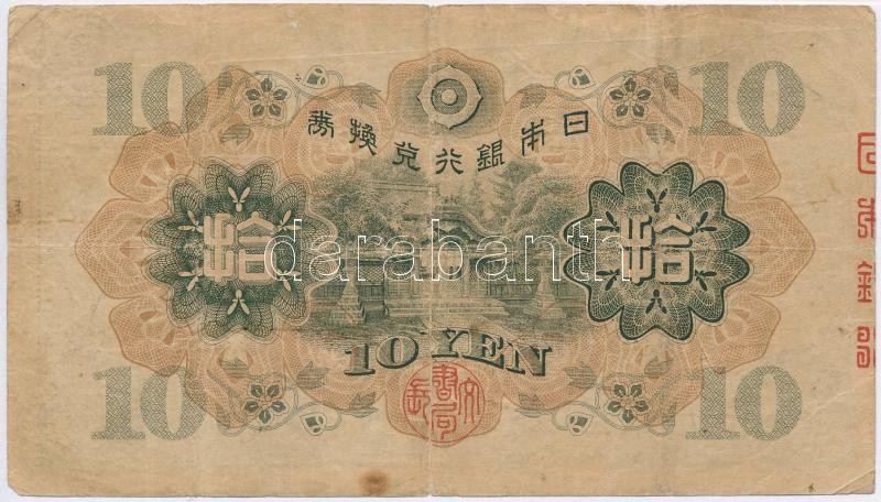 Japan 1930. 10 Yen C:F,VG https://www.darabanth.com/de/281-Fernauktion/281.0/Numismatik/Weltweit-Banknoten~300012/Japan-1930-10Y-TIII-III---Japan-1930-10-Yen-CF-VG~II1453030