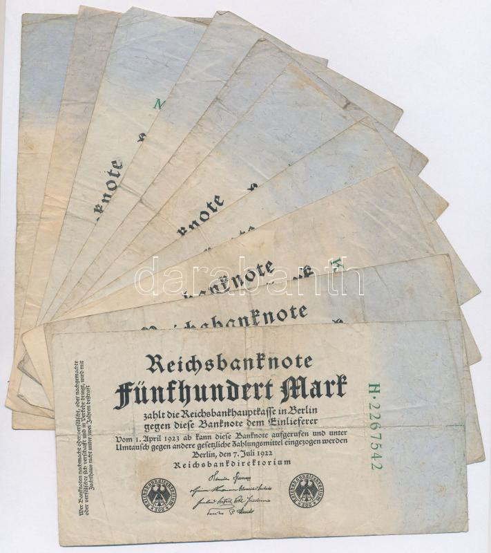 Germany / Weimar Republic 1922. 500 Mark (10x) C:F