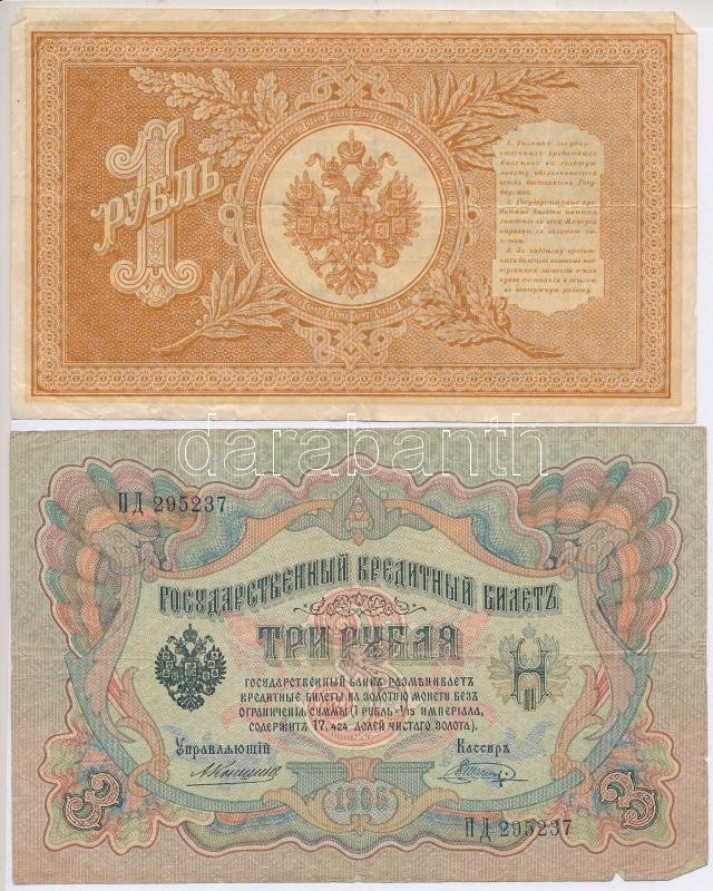 Beschreibung: Orosz Birodalom 1909-1912. (1905) 3R Szign.: Konshin + 1912-1917. (1898) 1R + (1909) 5R + (1910) 100R Szign.: Shipov T:III,IV 100R anyaghiányos