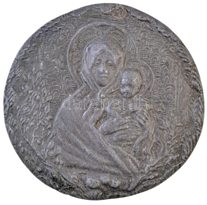 Olaszország DN "Mária és Jézus" Zn plakett hátoldalán elmosódott "DELOLIANO"? és "BARABINO" véséssel (95mm) T:2,2- ragasztónyom