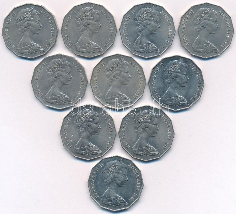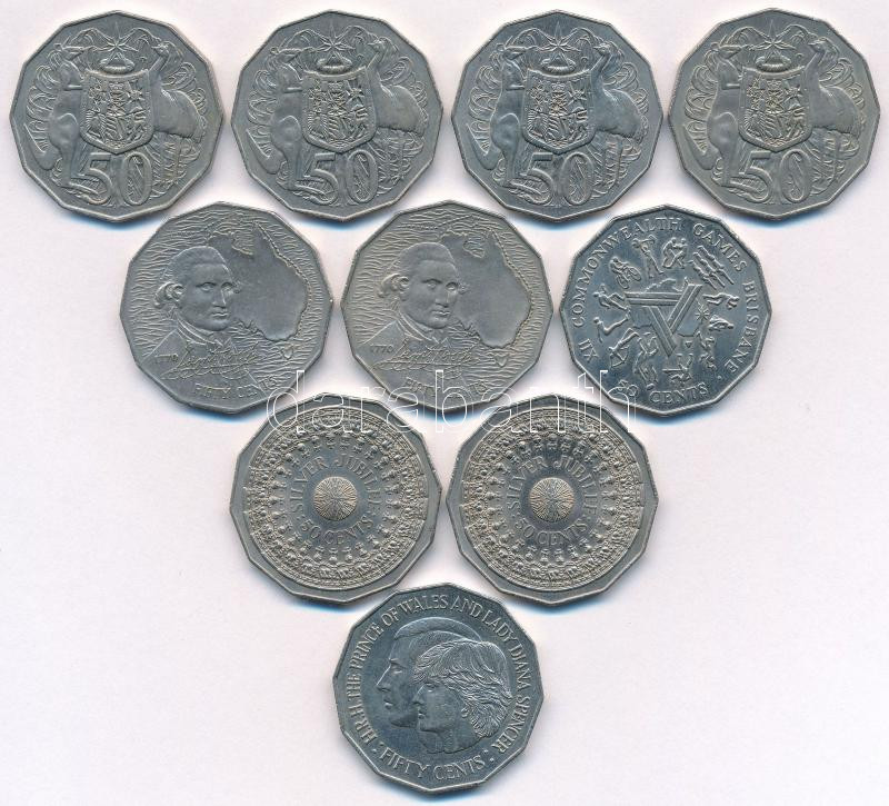 Ausztrália 1970-1982. 50c Cu-Ni (10x) közte 5db klf T:2 Australia 1970-1982. 50 Cents Cu-Ni (10x) with 5 diff pieces C:XF