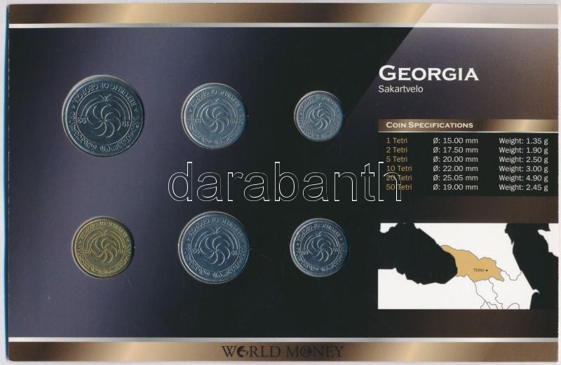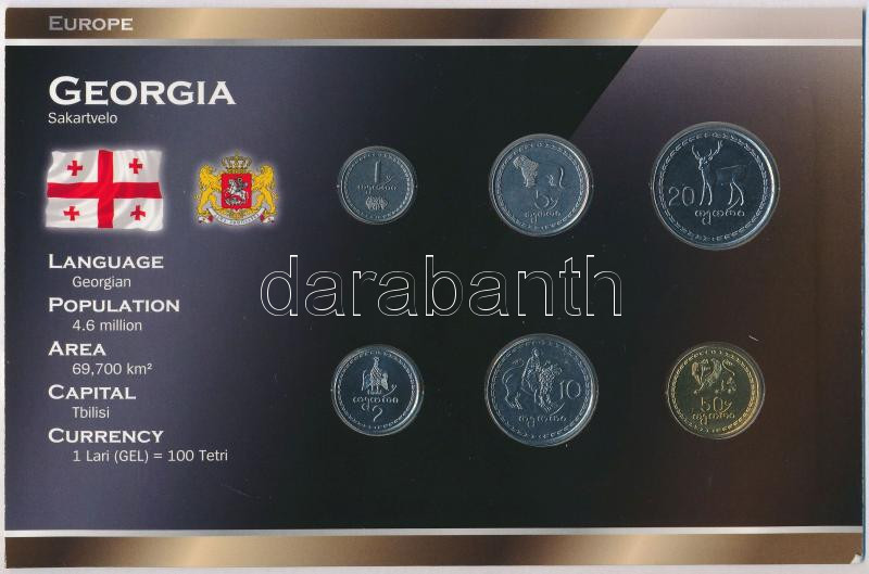 Grúzia 1993. 1th-50th (6xklf) forgalmi sor szettben, papírtokban T:1,1... https://www.darabanth.com/de/281-Fernauktion/281.0/Numismatik/Weltweit-Munzen~300013/Gruzia-1993-1th-50th-6xklf-forgalmi-sor-szettben-papirtokban-T1-1---Georgia-1993-1-Thetri--~II1450054