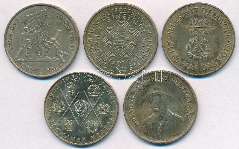 GDR 1972. 10 Mark Cu-Ni "Buchenwald Memorial" + 1973. 10 Mark Cu-Ni "10th Youth Festival Games" + 1974. 10 Mark Cu-Ni "25th Anniversary" + 1975. 10 Mark Cu-Ni "20th Anniversary - Warsaw Pact" + 1976. 10 Mark Cu-Ni "20th Anniversary - National People's Army" C:XF,VF