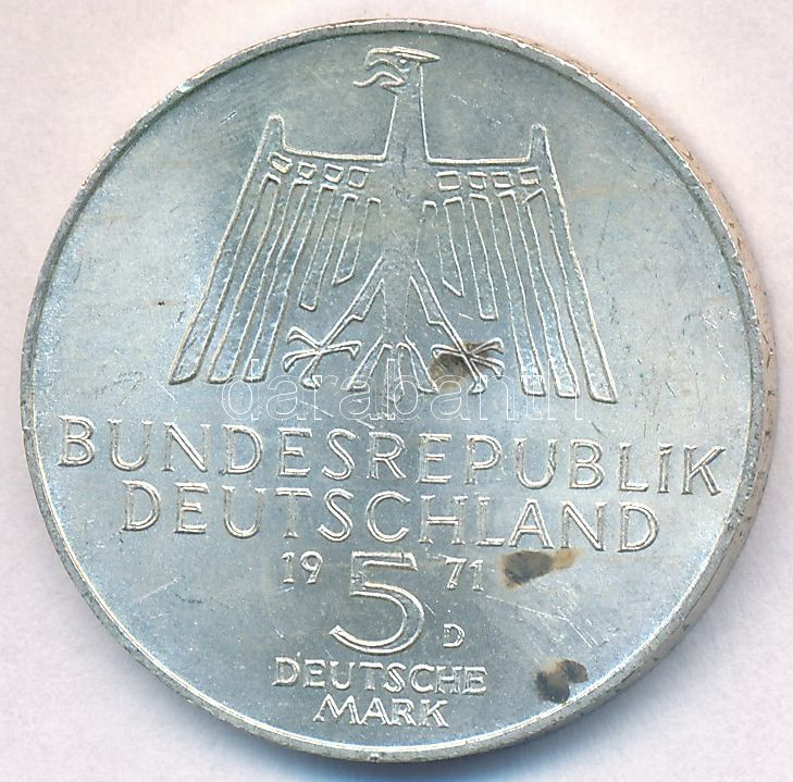 FRG 1971... https://www.darabanth.com/de/281-Fernauktion/281.0/Numismatik/Weltweit-Munzen~300013/NSZK-1971D-5M-Ag-Albrecht-Durer-T2-kis-ph-fo--FRG-1971D-5-Mark-Ag-Albrecht-Durer-T2-small~II1446928