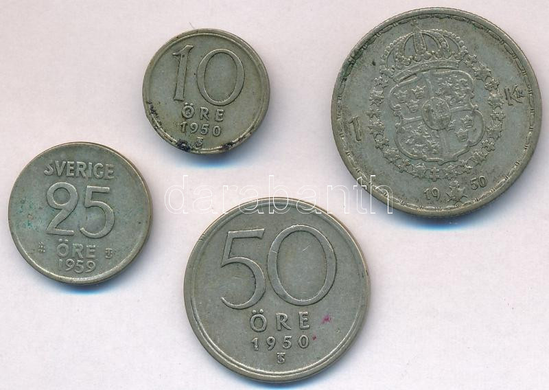 Svédország 1950TS 10ö Ag + 50ö Ag + 1Kr Ag "V. Gusztáv" + 1959TS 25ö Ag T:2,2- patina