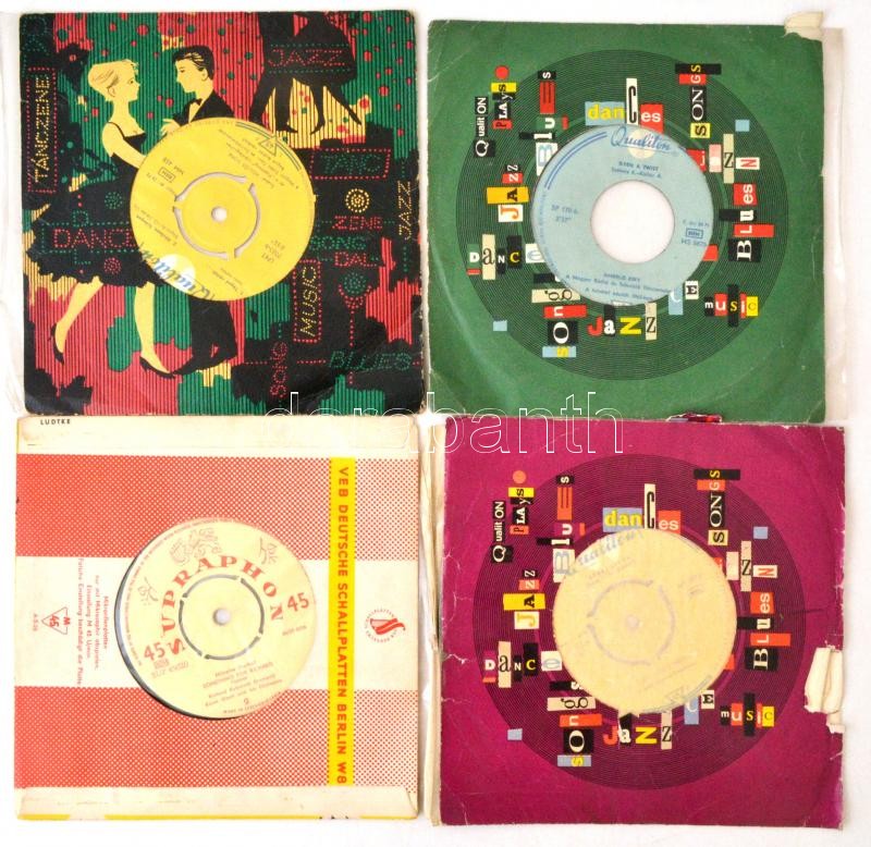 13 db kisméretű bakelitlemez, magyar és külföldi vegyesen (Fred Frohberg, Táncdalok, Václav Kučera and His Ensemble, Jacqueline Jourdan, stb.), némelyik tokján kis sérüléssel