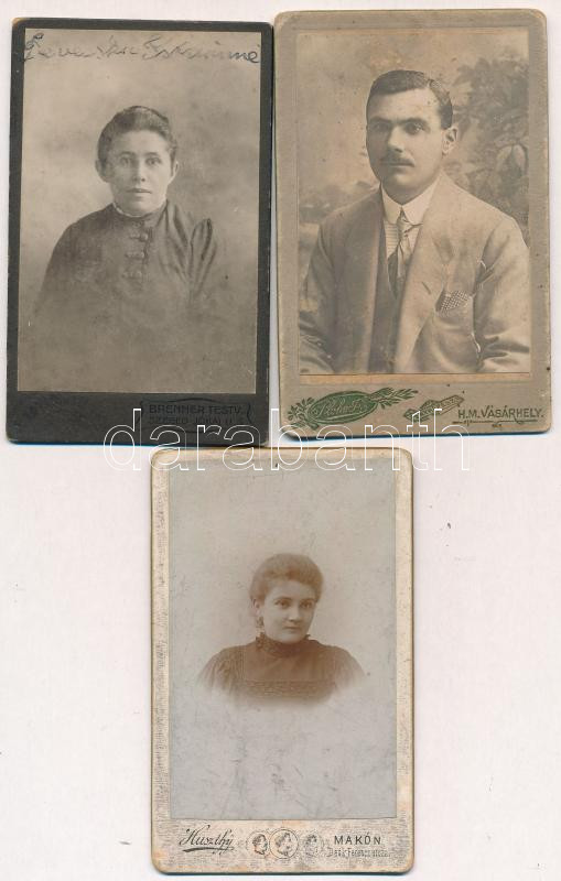 cca 1860-1890 Korabeli, keményhátú családi fotók, 3db, mind különböző Csongrád megyei műtermekből: Szeged (Brenner), Makón (Huszthy), H.M.Vásárhelyen(Plohn) cca10x6cm