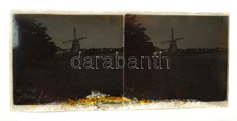 Beschreibung: cca 1920 Szélmalom, sztereo üveglemez negatívon és sztereo üveglemez pozitívon, 6x13 cm