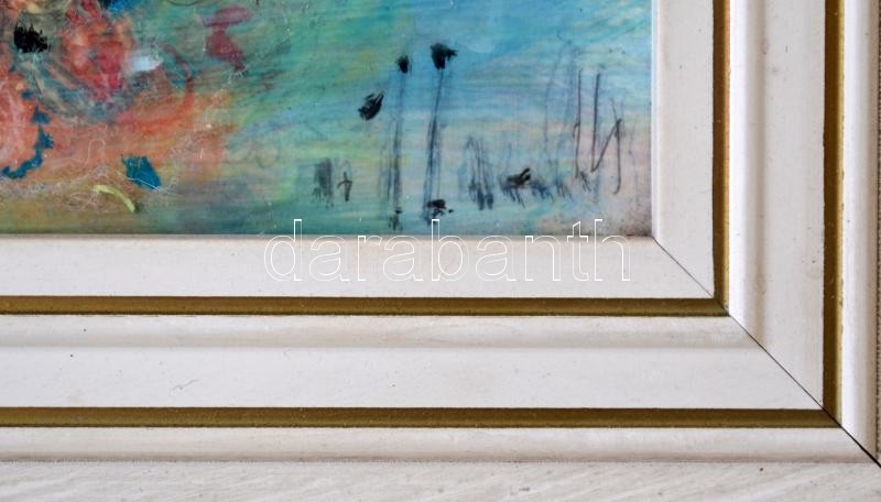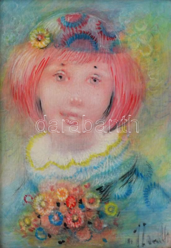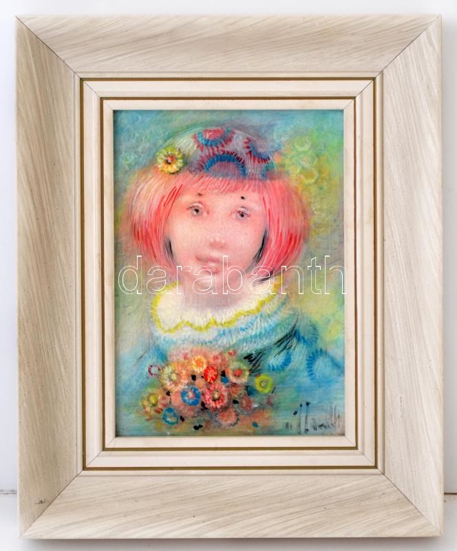 Beschreibung: Horváth István (?-?): Pierette lányka, akril, farost, jelzett, keretben, 16,5×12 cm