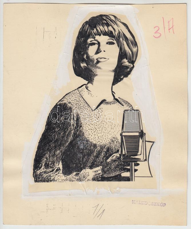 Jelzés nélkül: Énekesnő, plakátterv. Vegyes technika, papír, jelzett, ... https://www.darabanth.com/de/282-Fernauktion/282.0/Andere-Sammelgebiete/Gemalde-und-Grafiken~1/Jelzes-nelkul-Enekesno-plakatterv-Vegyes-technika-papir-jelzett-22x18-cm~II1458060