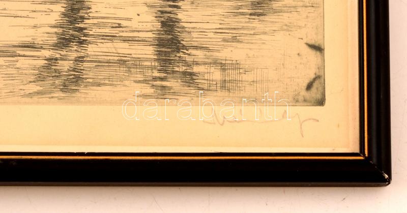 Beschreibung: Novák Lajos (1927-1989):Folyópart. Rézkarc, papír, üvegezett keretben 29×39 cm