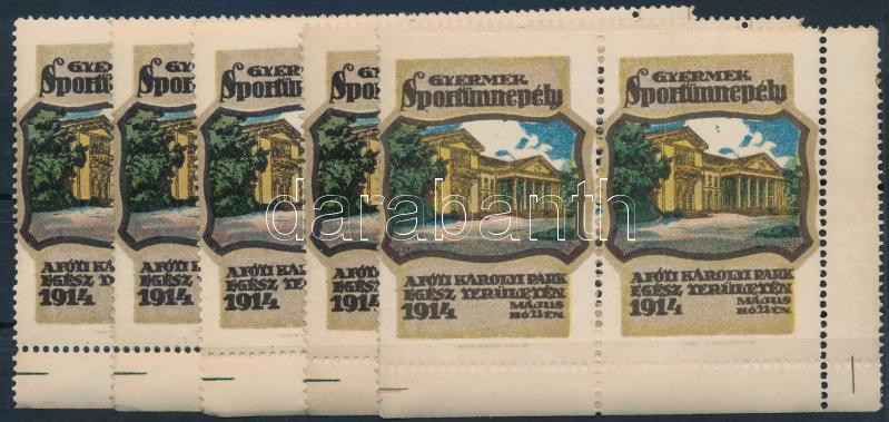 Beschreibung: 1914 Gyermek sportünnepély Fót 5 db ívszéli levélzáró pár (litho)