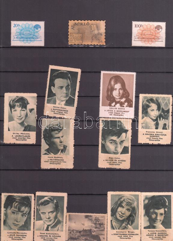 Beschreibung: A Nemzet Színházáért 2 db támogatási bélyeg + 12 klf levélzáró színászekről