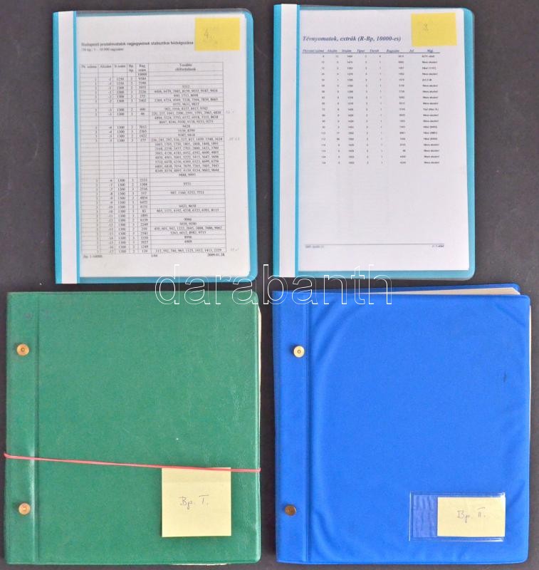 Beschreibung: Nagy budapesti ragjegy gyűjtemény (1-10000) 2 db nagyalakú berakóban és 2 db iratrendezőben, fehér karton dobozban, teljes számítógépes komplett feldolgozással