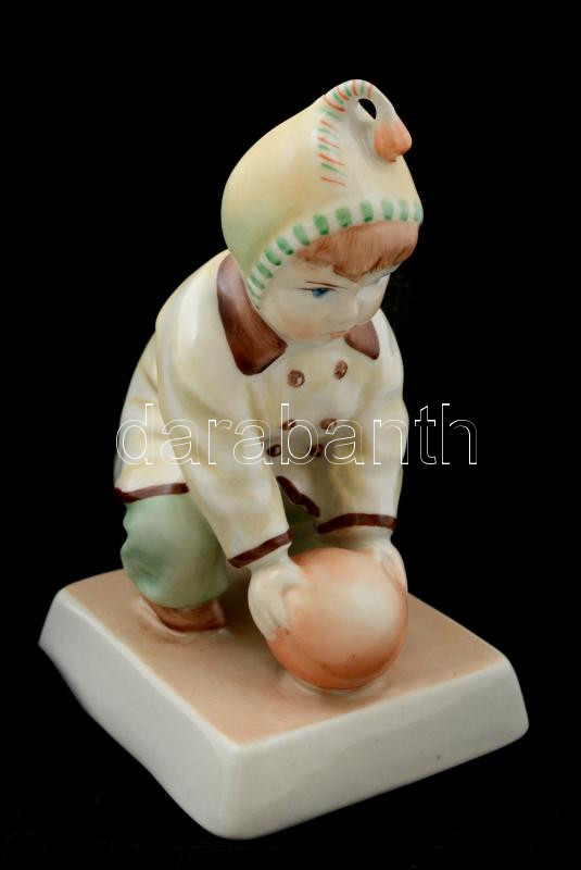 Beschreibung: Zsolnay labdázó kisfiú, kézzel festett, jelzett, apró kopásnyomokkal, m: 13,5 cm