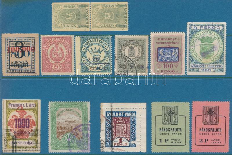 Beschreibung: 13 db vegyes városi illetékbélyeg